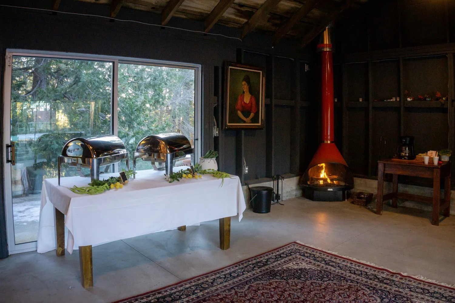 If you desire, we can arrange to have snacks and drinks in every cabin or charcuterie waiting for you when you arrive. Or, we’ll stock your fridge in advance with items you choose from a shopping list. Ask when talking with us about your event.